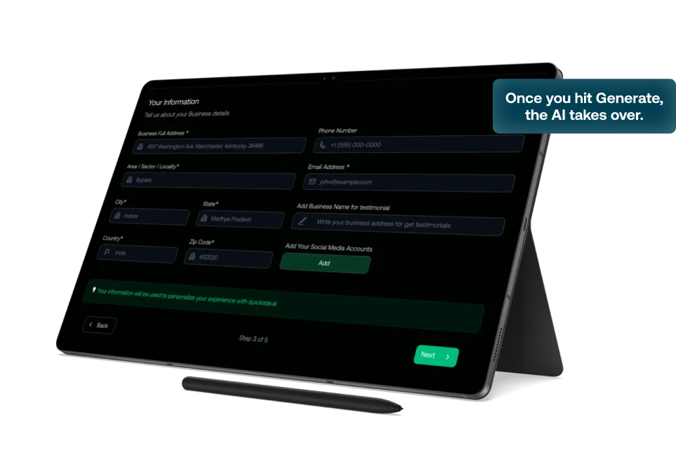 Just fill a short form — our AI handles everything from design to SEO.